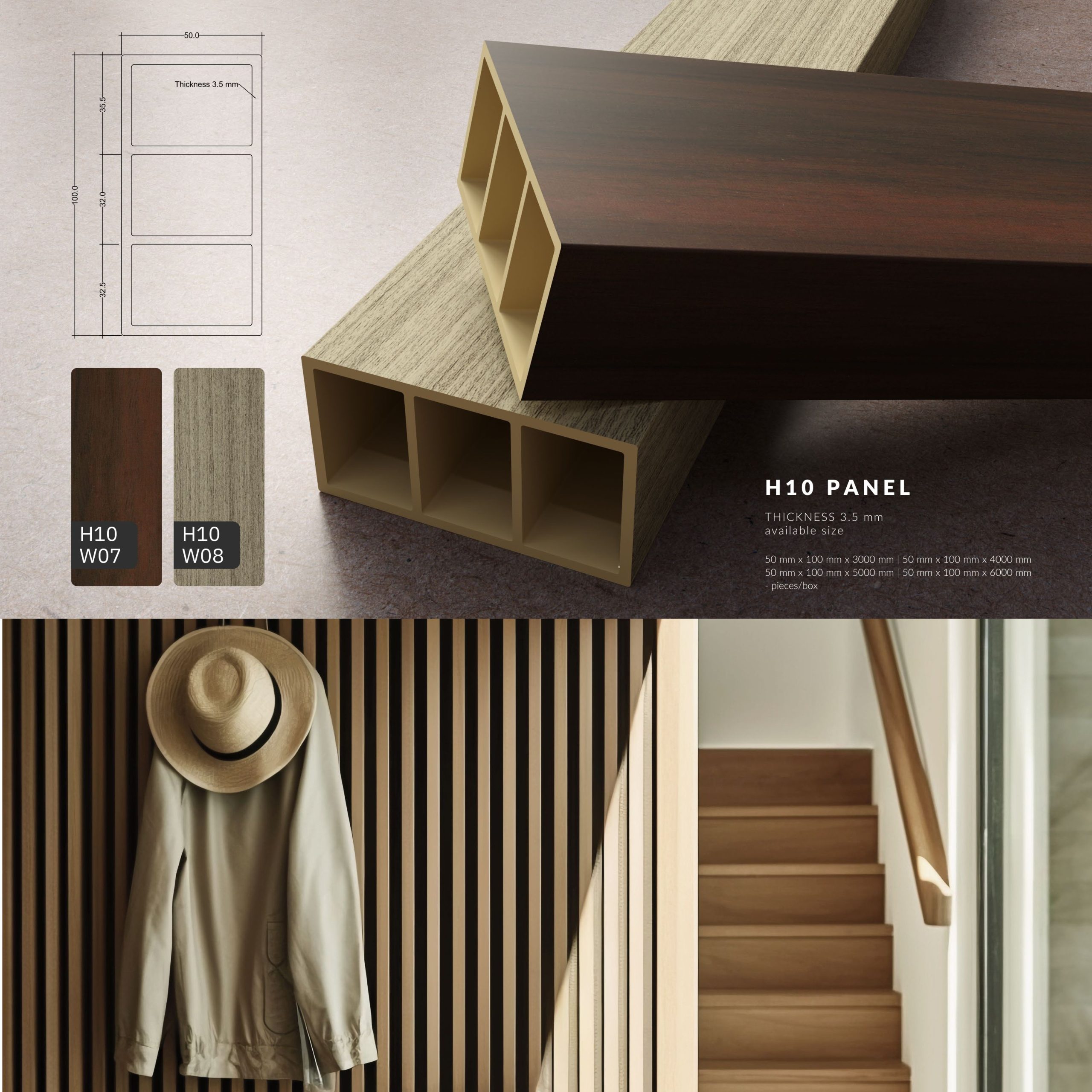 Partisi WPC (Wood Plastic Composite) terdiri dari serat kayu berkualitas tinggi dan komposit polimer termoplastik bisa digunakan untuk Outdoor dan Indoor seperti pembatas ruangan, fasad rumah, canopy, dll